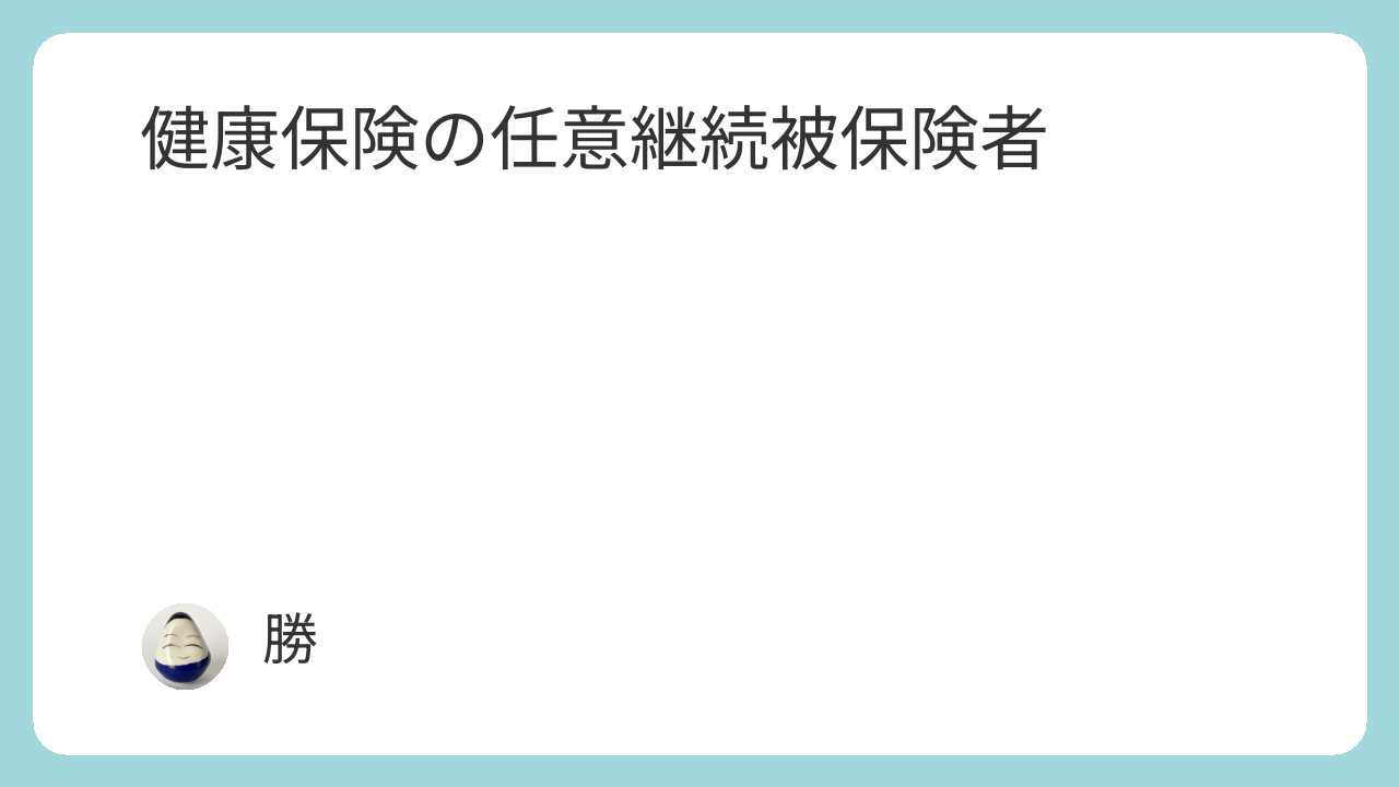 ただし、一定の条件のもとに本人の希望により被保険者として継続することができ、この制度を利用して加入した被保険者を「任意継続被保険者」といいます。