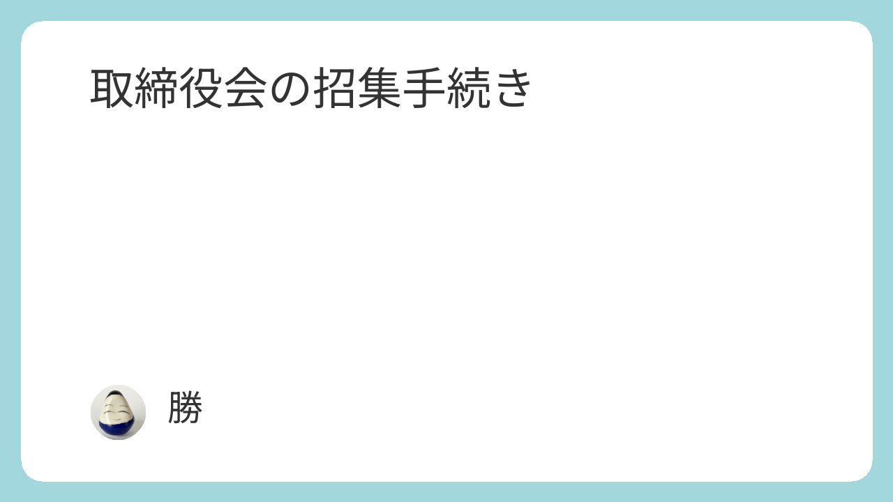 課長: 取締役会は会社の経営に直結する重要な会議だから、招集のルールをしっかり理解しておくことはとても大切だよ。