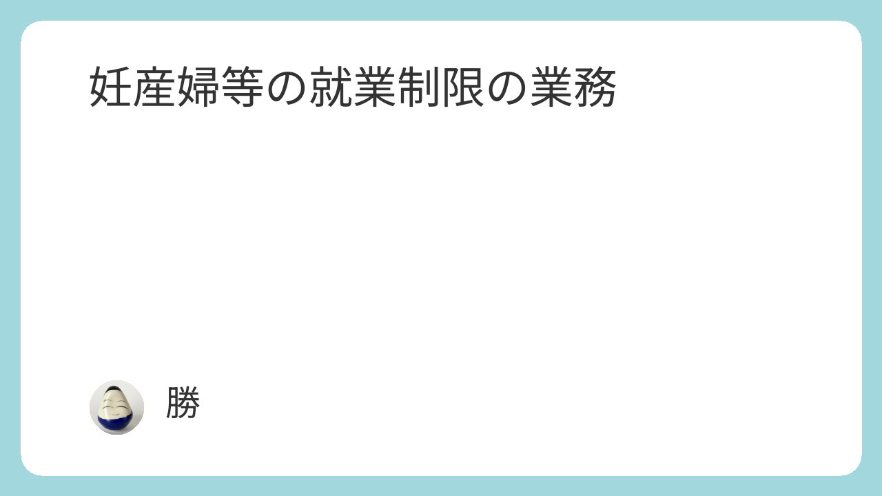 | 禁止業務 | 妊娠中 | 産後1年 | |