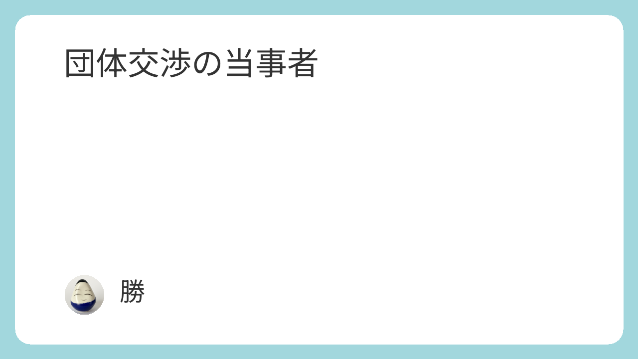 労働者側の当事者は、原則として労働組合第2条の要件を満たす労働組合、つまり法適合組合である単位組合が団体交渉の当事者になります。