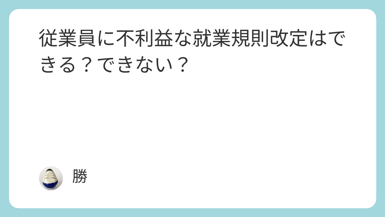 結論としては、就業規則の不利益変更は、できないことではありませんが難しいです。やる場合は、上記に述べた条件を頭に、慎重に進める必要があります。