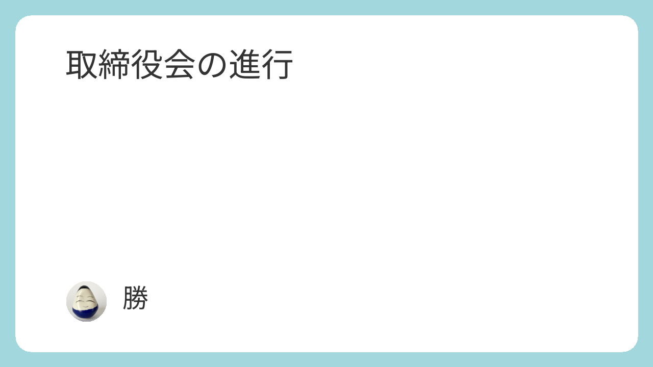 ここで、議長(社長)が、近頃思ったことについて発言したり、訓示的な発言をすることが多いようです。社長の性格によります。