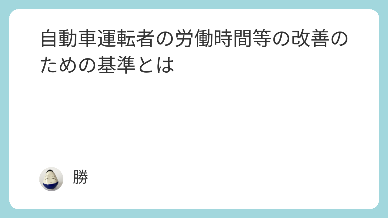 自動車運転者の労働時間等の改善のための基準(改善基準告示=令和4年厚生労働省告示第367号)は、トラック、バスおよびタクシー・ハイヤーのドライバーの労働時間に関する上限などを定める基準です。令和4年12月23日に改正され、令和6年4月1日から適用されました。