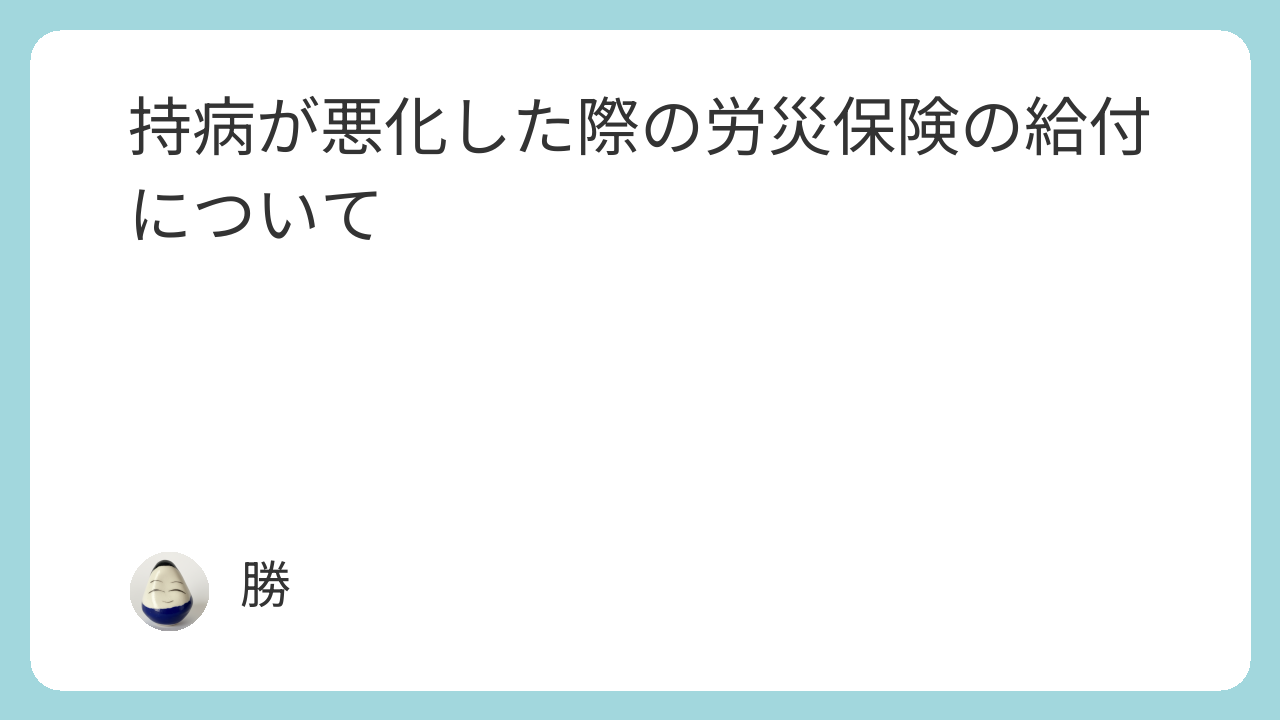 業務が持病を悪化させた主な原因であると認められれば、労災保険の給付を受けられる可能性があります。ただし、最終的な判断は、詳細な状況や証拠に基づいて行われます。
