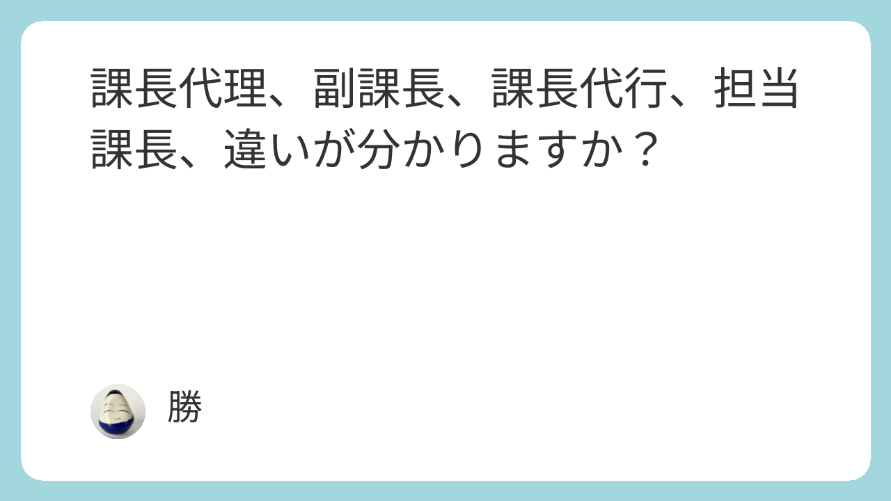 課長代理、副課長、課長代行、担当課長、違いが分かりますか?
