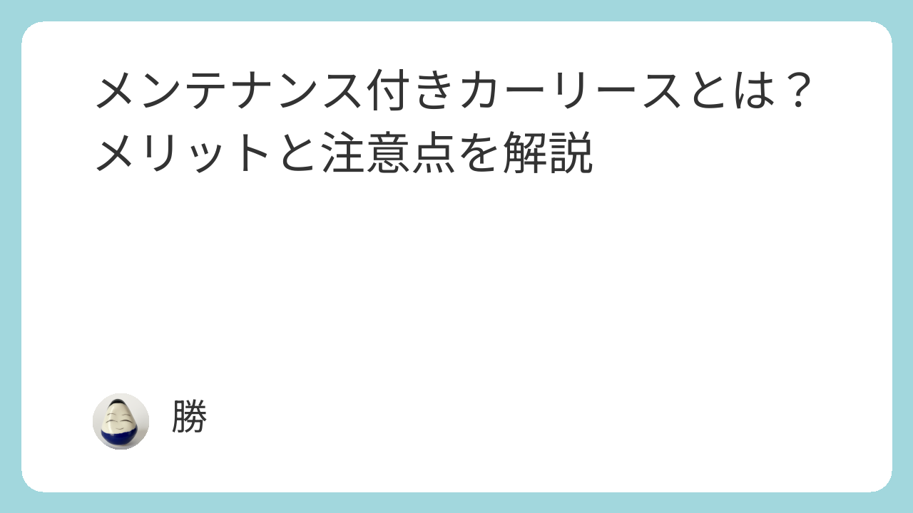 メンテナンス付きリースは、車両の維持管理にかかる手間と突発的な出費を削減できる点が大きなメリットです。しかし、費用が割高になるため、ご自身のニーズや予算に合わせて、含まれる内容をしっかり吟味することが大切です。