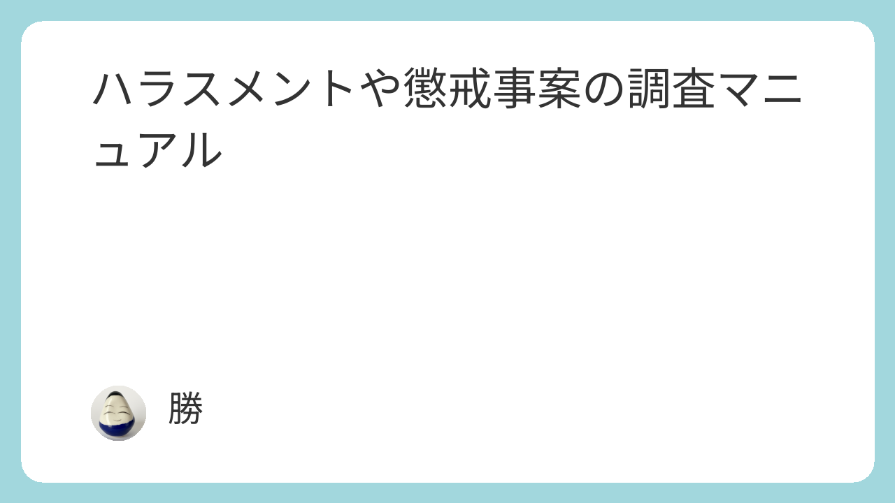 ハラスメント事案や懲戒処分事案は公正で綿密な調査が重要です。調査の信頼性を保つには、調査のプロセス極めて重要です。中規模な会社を想定し、調査の任にあたる者が参照できる「懲戒事案調査マニュアル」のひな形を示します。