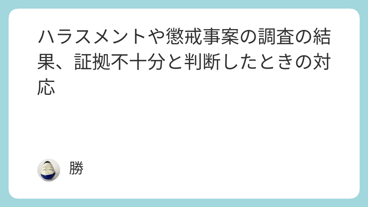 証拠不十分のまま「心証が疑わしい」という理由だけでハラスメント認定や懲戒処分を行うのは絶対に避けるべきです。対応に迷う場合は、必ず労働問題に精通した弁護士に相談してください。