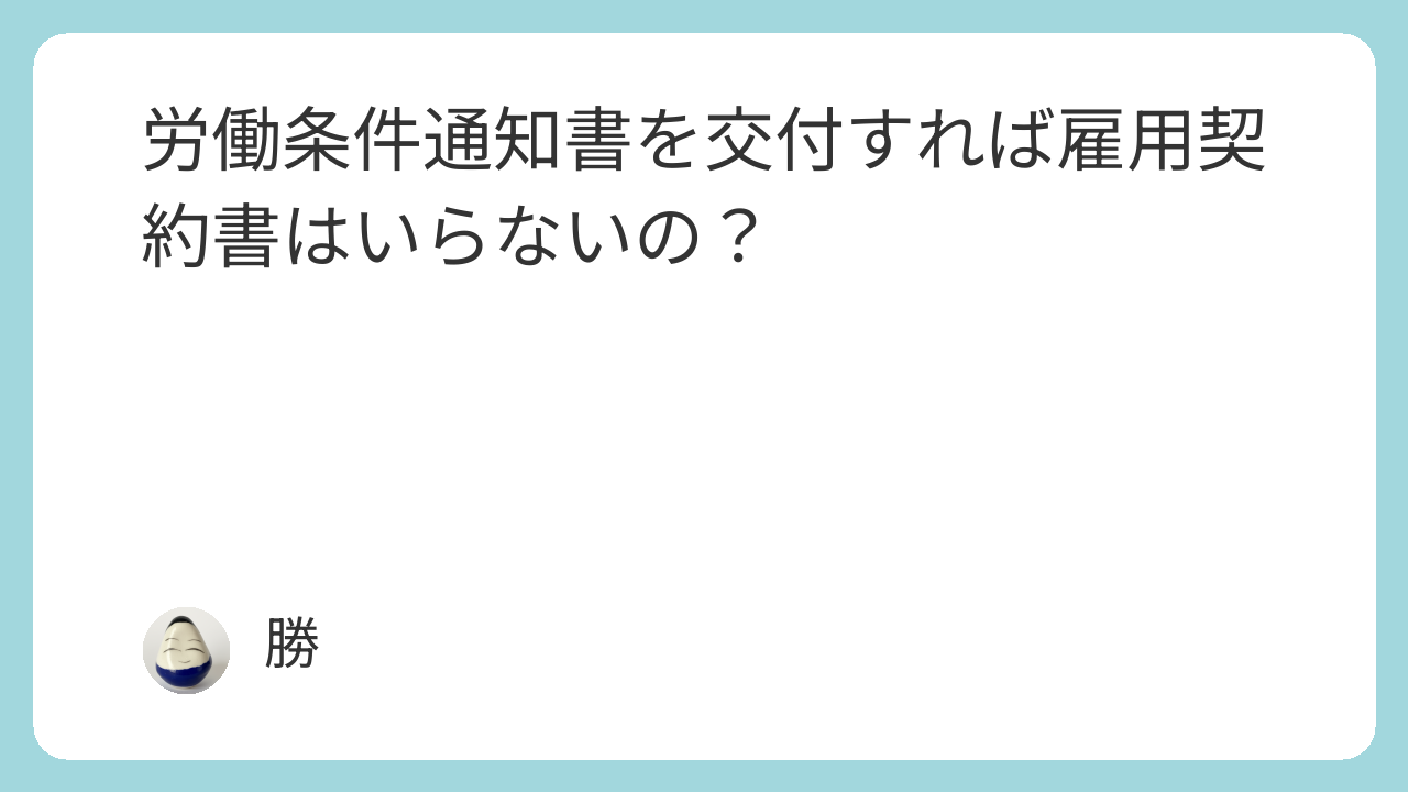 労働条件通知書はあくまでも使用者が労働者に労働条件を示したものであって、雇用されることについて合意したことを示すものではありません。雇用されることについて合意した文書が雇用契約書です。