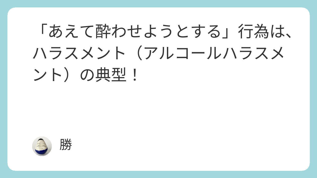 - 「今後は、『親睦を深める』という目的に集中していただき、お酒の強要や泥酔を促すような発言は控えていただけないでしょうか。」
