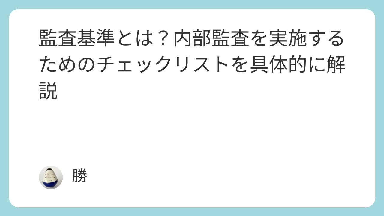 監査基準(チェックリスト)とは、内部監査を体系的かつ客観的に実施するための一覧表です。組織の目標達成、業務の効率性・有効性、財務報告の信頼性、関連法規の遵守などを確保するために、組織のルールや手順が正しく整備・運用されているかを検証するための具体的な質問や確認事項が記載されています。