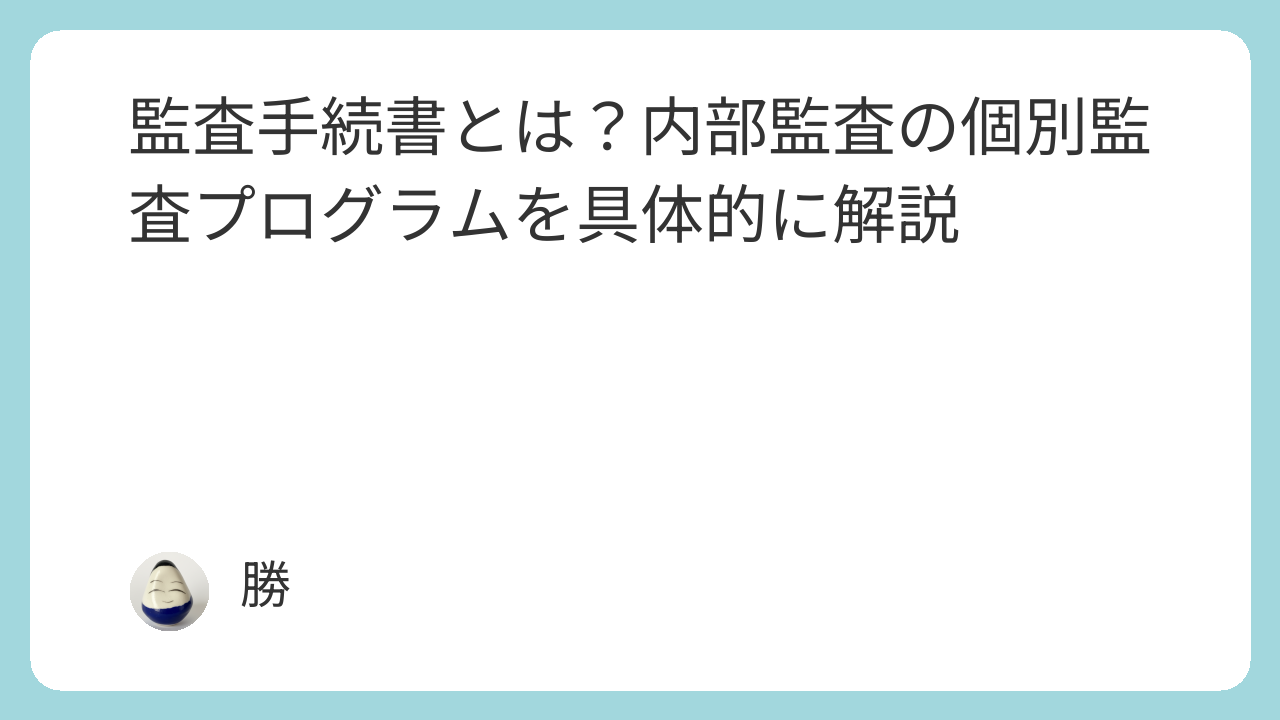 監査手続書(個別監査プログラム)とは、特定の監査テーマや対象部門について、監査を効率的かつ網羅的に実施するための具体的な手順(手続き)を定めた文書です。