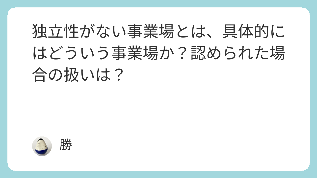 | 建物・組織構造 | 本社や他の事業場に付随する補助施設(例:工場内の診療所、小規模な倉庫、常駐先など)と見なされる場合。 |