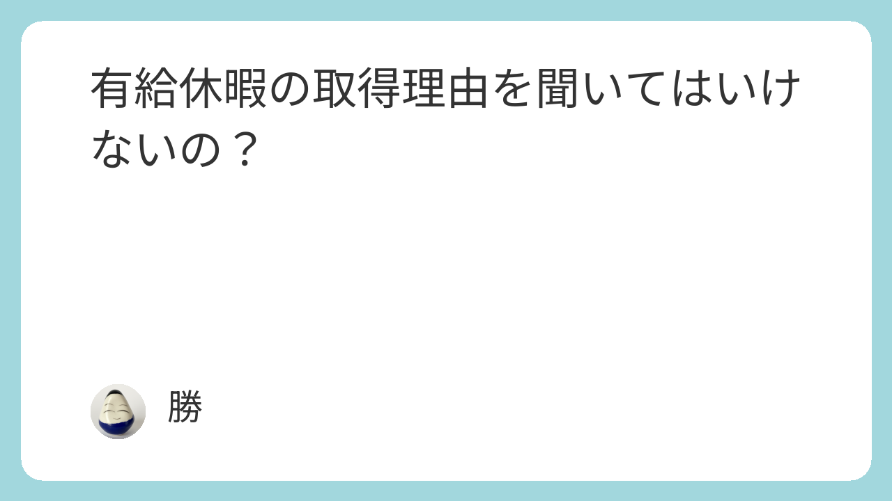有給休暇の申請があったときに、上司が理由を聞くのが良くないと聞きましたが、普通の人間関係であれば、どうしたの?どこかへ行くの?とか会話するのが自然だと思うのですが、やはり、聞いてはいけないのですか?