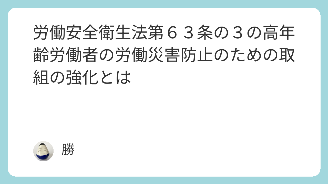 労働安全衛生法第63条の3に定められた高年齢労働者の労働災害防止のための取組の強化とは、事業主に対して、加齢による身体機能の変化などを考慮し、高年齢労働者が安全かつ健康に働けるように、労働災害を防止するための必要な措置を講じることを努力義務として課すものです。(2026年4月1日からは義務化される予定)