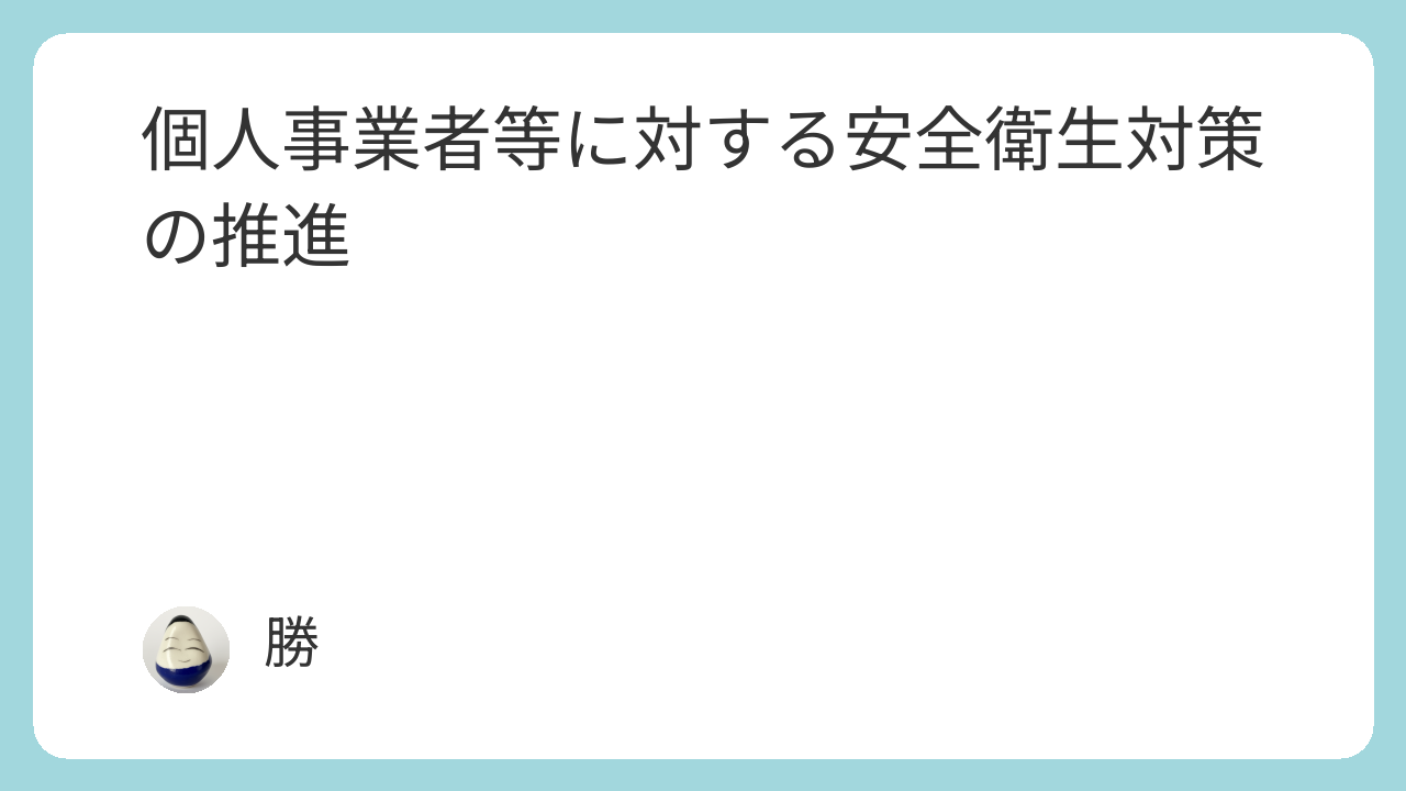 労働安全衛生法が改正され、「個人事業者等」が労働安全衛生法のなかに位置づけられ、個人事業者等の労働災害防止対策が強化されました。