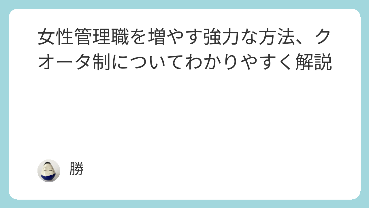 クオータ制とは、特定の属性(この場合は女性)の比率をあらかじめ割り当てる制度です。