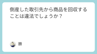 営業の事務 倒産した取引先から商品を回収することは違法でしょうか? 自社商品の回収について質問です倒産の事実が判明してから、自社が納入した商品を先方の倉庫から、先方の社員の了解を得て回収してくることは違法でしょうか。納入した商品を、倒産の事実が判明してから、先方の社員の了解を得たとしても、回収してくる行為は... 2026.03.10 営業の事務