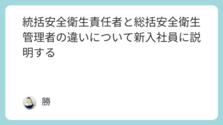 安全衛生管理 統括安全衛生責任者と総括安全衛生管理者の違いについて新入社員に説明する