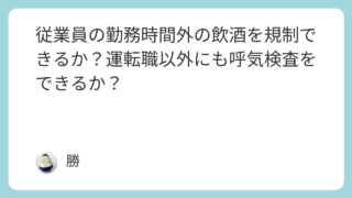 安全運転 従業員の勤務時間外の飲酒を規制できるか?運転職以外にも呼気検査をできるか? 勤務時間外の飲酒規制について勤務時間外の飲酒を規制することは、原則として従業員のプライバシーや個人の自由を侵害する可能性が高く、一般的には許容されません。ただし、特定の状況下では例外的に規制が認められる場合があります。労働者は、労働契約に基... 2026.03.14 安全運転